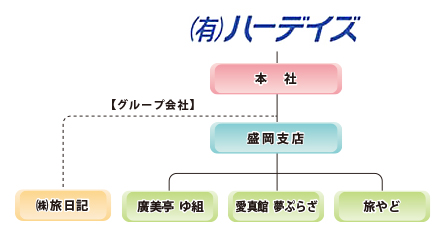 | 事業所 | ◎旅やど (岩手県盛岡市繋字塗沢37-5) ◎愛真館夢ぷらざ (岩手県盛岡市繋字塗沢40-4 「愛真館西館」内) ◎廣美亭 ゆ組 (岩手県花巻市湯本第1地割88-1「廣美亭」内) |