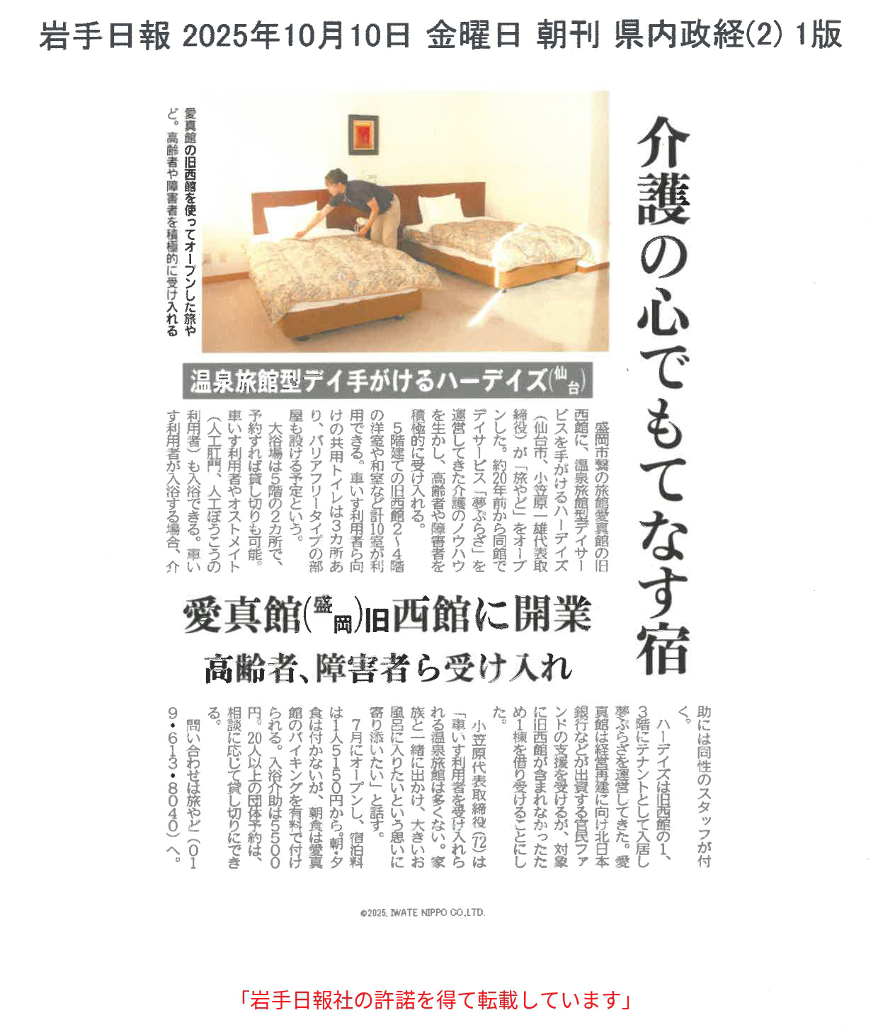 岩手日報朝刊に掲載されました。
